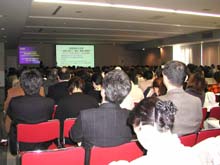 一般演題のクリティカルパス・セッションでは、導入、記録、バリアンス解析、応用、経済効果が論じられ、リスクマネジメント・セッションでは、事故要因の分析、事故防止システム、事故防止対策が発表されました。会場は口演2会場、クリティカルパス展示1会場の3会場で行われ、参加者が多かったため、特別講演は3会場スクリーン同時中継、一般演題も展示会場でのTV同時中継を行いましたが、どの会場も満席で、リスクマネジメントの会場は立ち見が出る状態となり、医療機関の関心の高さと切実さが窺われました。会の最後のセッションであるクリティカルパスの展示会場では各施設毎に自由討論を行い、前立腺の手術で術後1週間の入院は長すぎるか、等と議論が白熱し、活気のある中に、地方会を終了しました。