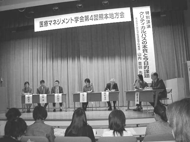 平成14年4月20日、熊本県立大学講堂を会場に第4回医療マネジメント学会熊本地方会を開催いたしました。当日は朝から大雨洪水警報が出されるなど、あいにくの天気ではありましたが、昨今の医療マネジメントへの関心の高まりから、会場には300名近くの参加者が詰め掛け、立ち見が出るほど盛況でした。