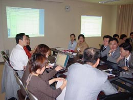 近畿地区では第8回の国立循環器病センタ−に続き2回目の開催となりました。1日目は講師の方々による総論的な講演で、2日目は受講者による実際にクリテイカルパスを作る作業でした。今回の意見交換会は結婚式場を設定しましたが割合好評でした。開催をお引き受けした当初は色々不安なことも多かったのですが、前回開催の国立病院九州医療センタ−でのセミナ−を見学し、有用なアドバイスをいただき、なんとか大きなトラブルも無く終えることがで