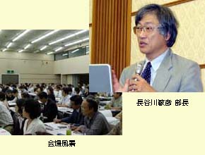 今回のセミナーの基調講演は国立保健医療科学院の長谷川敏彦部長により「21世紀型医療連携」の題で行われました。長谷川部長によると、21世紀の医療環境は、特に団塊の世代が高齢化を迎える2015年に大きく変節点がくるといいます。またそのころには供給側の医師像も大きくプライマリケア医を中心に変わると予測しました。さらに医療連携では疾病単位の連携である疾病管理モデルが重要になることを強調しました。