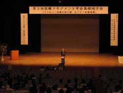 万葉の歌聖・柿本人麿が故郷への賛歌を詠じ、画聖・雪舟が珠玉の水墨画を描いた益田の地で、平成16年9月11日に医療マネジメント学会島根地方会が開催されました。メインテーマを《すすめよう医療の架け橋、めざそう医療連携》とし、特別講演に徳島赤十字病院院長の片岡善彦先生が「21世紀急性期病院経営戦略」と題して、病院にはマトリックス型組織の強化が必要で、各部門や委員会の充実と職員の意識徹底が最重要課題であることなどを講演されました。